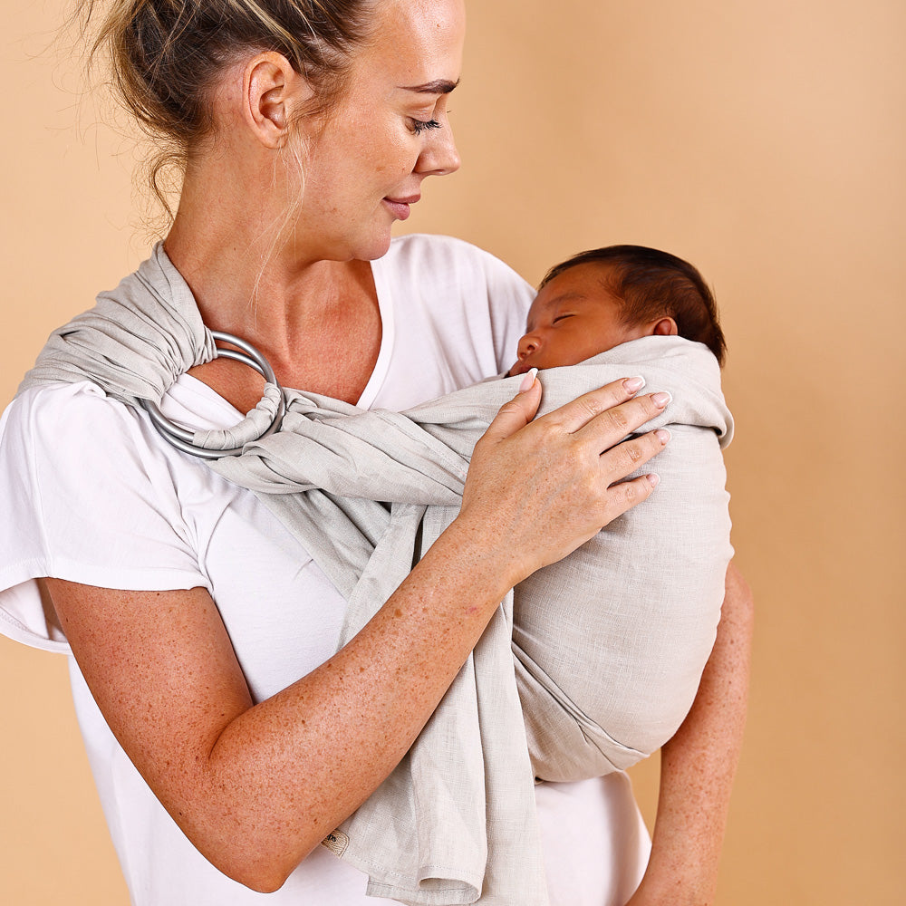Crafted from a single piece of high-quality linen and two aluminum rings, this versatile accessory embodies practicality and elegance. In recent years, the popularity of baby slings has surged, with modern parents seeking convenience without sacrificing closeness. It can appear as a lengthy piece of cloth with two rings attached at first glance.